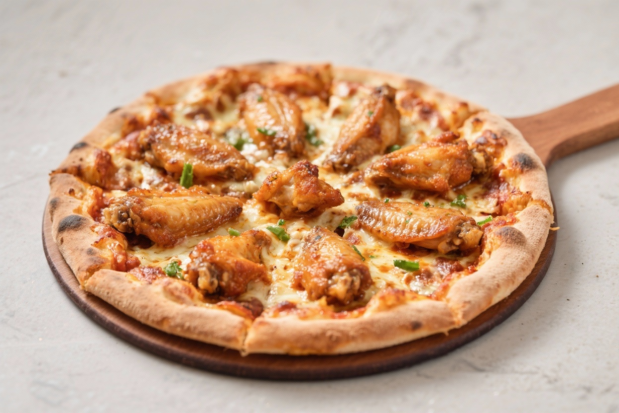 - BBQ Wing Pizza: Swap buffalo sauce for smoky BBQ. Use smoked mozzarella or Gouda, finish with pickled onions and cilantro.